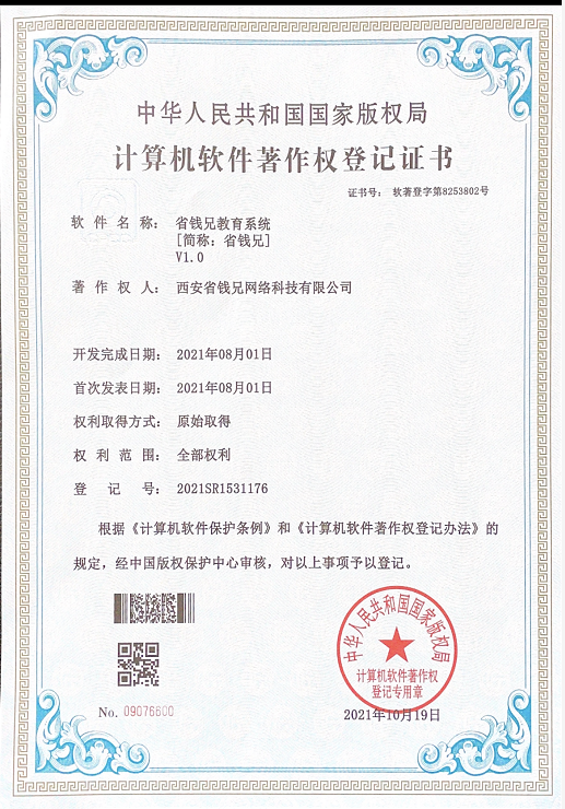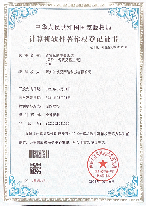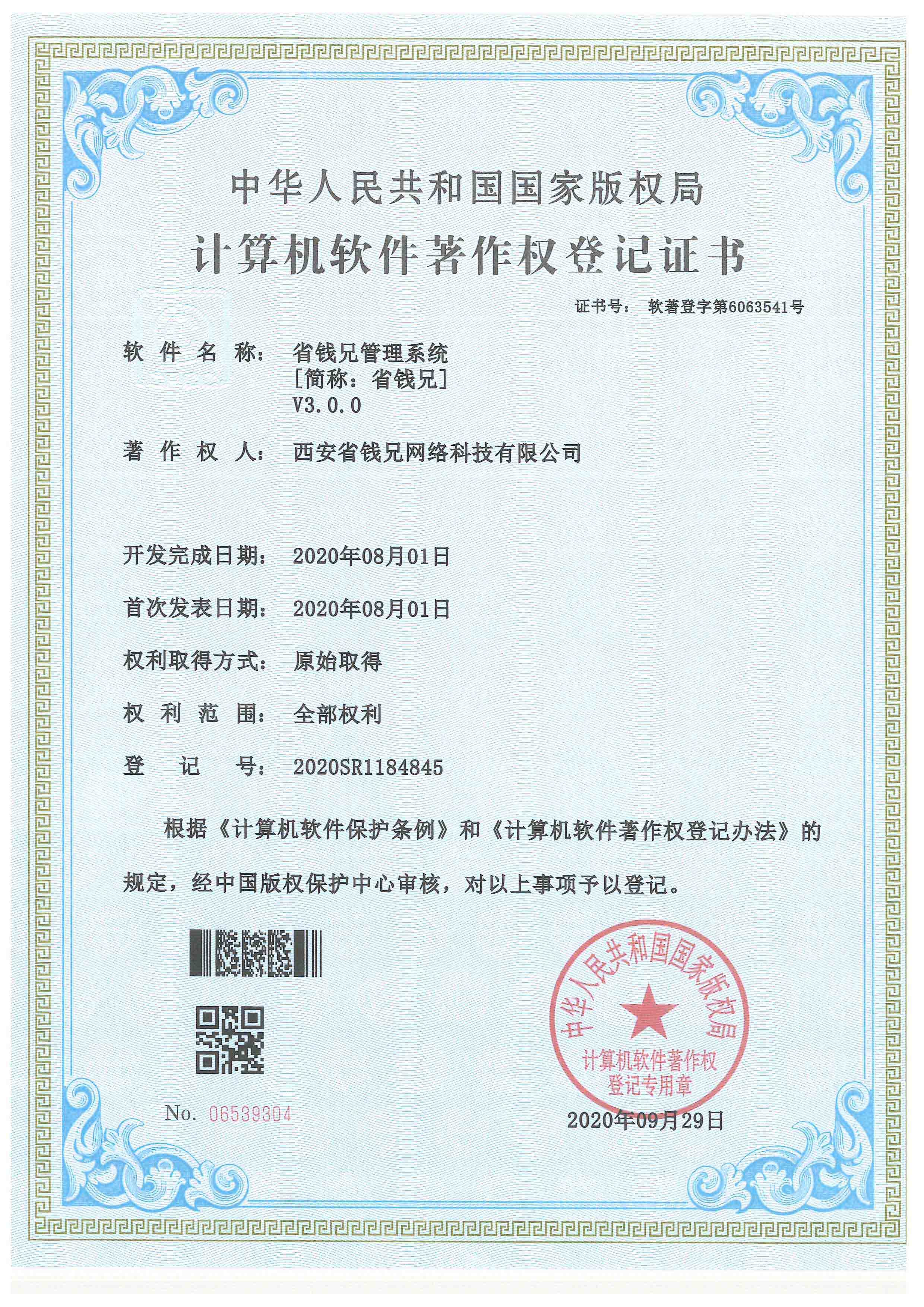 省钱兄科技成立于2019年9月26日,创始人马晓东,96年的互联网创业者,毕业于西安科技大学,2021年优秀民营企业家,知名博主,带领公司发展5年获得很多成果,我们是21年高新技术企业,2021年科技型中小企业,2020年3A企业认证,2021年优秀民营企业,ISO9001国军标企业,ISO9001质量体系企业,目前拥有客户3000多家,自研发产品100多款,主要领域商标代理;版权代理;知识产权服务;信息技术咨询服务;信息系统集成服务;计算机系统服务;电竞信息科技;数据处理和存储支持服务;技术服务、技术开发、技术咨询、技术交流、技术转让、技术推广;软件开发;网络与信息安全软件开发;网络设备销售;市场营销策划;专业设计服务;平面设计;广告设计、代理;广告制作;办公服务;图文设计制作等涉及互联网的服务都可以咨询。